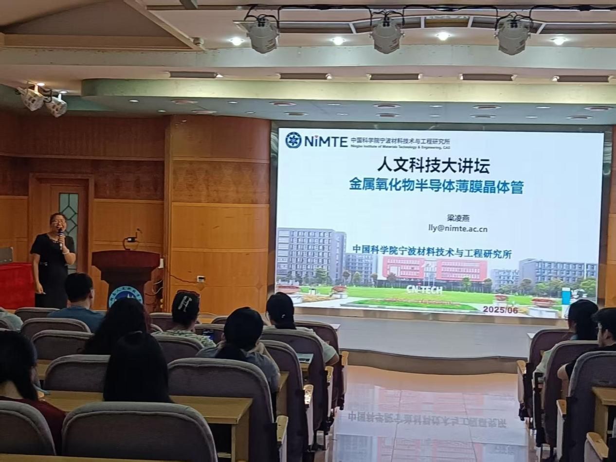 6月13日上午,应材料与环境工程学院邀请,中国科学院宁波材料技术与工程研究所梁凌艳研究员做客人文科技大讲坛,在养根楼多媒体报告厅作了一场题为“金属氧化物半导体薄膜晶体管”的讲座。讲座由材环院彭伟才副院长主持,材料科学与工程、材料化学、化学等专业的200余名老师和学生参加了此次讲座。