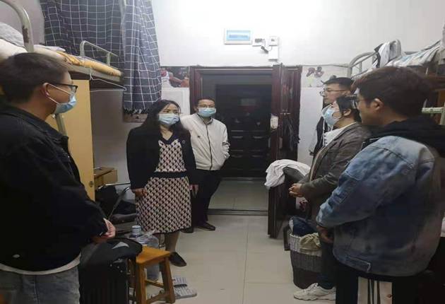 针对春季突发疫情、流感多发等各种情况,领导和老师们立即行动深入学生宿舍进行疫情防控知识普及、督查。学院领导、老师细心和耐心地解读当前疫情防控文件要求,疫情就是命令,防控就是责任,提醒学生出入校园出示两码,佩戴口罩、校徽,不聚集,不扎堆,倡议大家近期不网购,减少周边活动,非必要不出校、不出娄,不出省等相关措施;积极配合学校、学院的防控工作;在走访毕业生宿舍中,文院长积极地帮助毕业生进行工作对接,告知大四学生一定不能错过“金三银四”就业黄金期,及时浏览学校、学院提供的就业信息,考研学生做好复试准备,秋季征兵要积极报名。同时陈书记强调了大四学生宿舍环境卫生、出行审批要求,近期无特殊情况暂不出娄,出省。