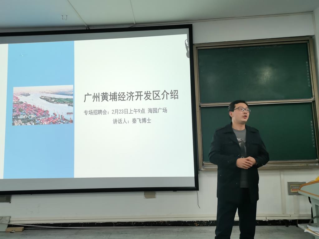 学院邀请秦飞博士向同学们介绍了广州黄埔区的实际情况,为2月23日即将到来的广州黄埔经济开发区的专场招聘会预热;副院长彭伟才、征兵专干陈昱老师、就业专干朱舒腊就毕业答辩、征兵优惠政策、“毕业去向登记系统”的操作、学生档案、就业材料、毕业后组织关系转移等相关毕业、就业事项为同学们详细解说。
