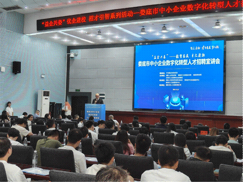 宣讲会上,娄底市工信局党组成员、副局长刘建斌详细介绍了娄底市中小企业数字化转型的基本情况,他为同学们详细介绍了招聘企业的发展历程、企业文化、业务范围以及本次招聘的岗位信息,包括岗位要求、职业发展路径和福利待遇等内容。在宣讲环节,企业代表与同学们分享了行业动态和前沿技术,鼓励大家积极投身相关领域,为未来的职业发展做好规划。招聘会现场,材料与环境工程学院的学子们手持精心准备的简历,穿梭于各个展位之间,积极与招聘人员交流互动,投递简历。许多学生表示,这次招聘会为他们提供了与企业直接对话的宝贵机会,能够深入了解行业动态和企业需求,对自己的职业规划有了更清晰的认识。