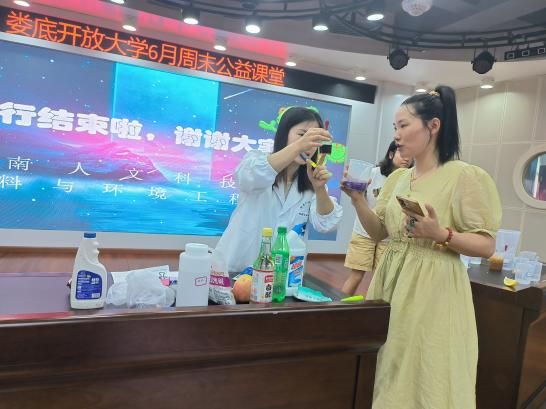 为普及化学知识,助力更多青少年打开科学大门,充分发挥在校大学生的专业优势,材料与环境工程学院与娄底市开放大学于2024年6月15日在娄底市开放大学南校区联合开展了化学科普进课堂系列活动之周末公益课堂活动。化学专业骨干教师李春艳老师带领志愿者共同参加此次活动,此次活动主题为梦幻之旅-有趣的酸碱。