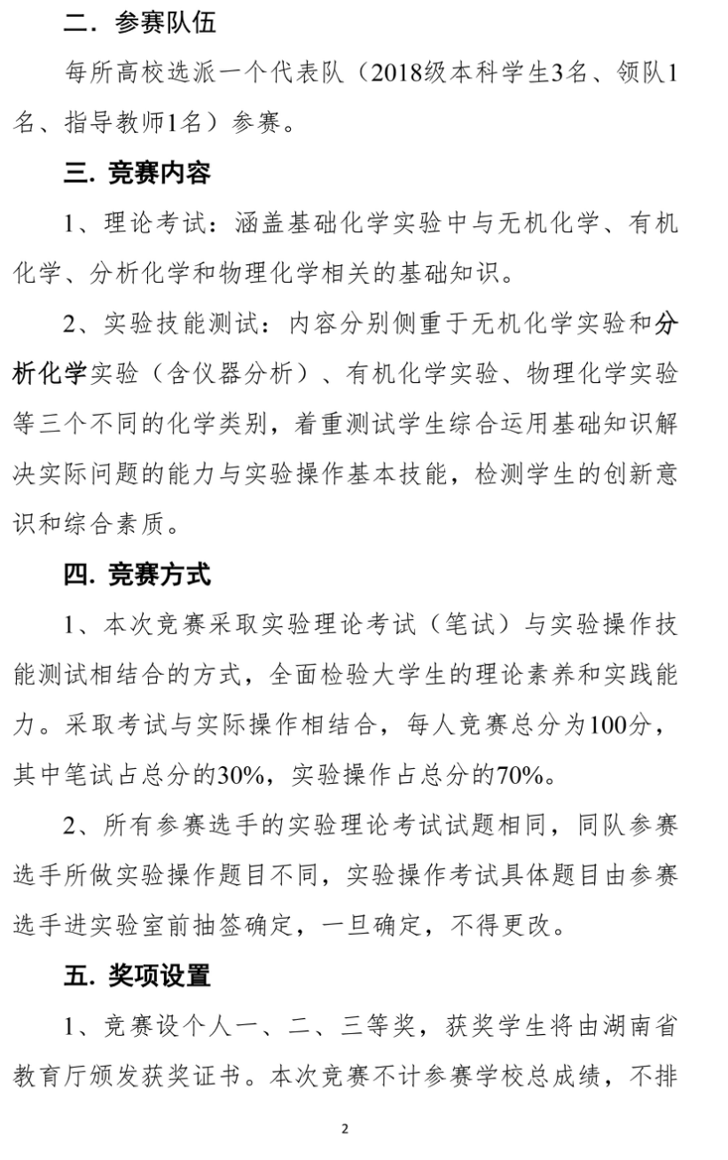 湖南省第十一届大学生化学化工学科竞赛通知(化学实验技能竞赛)