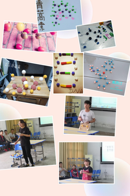 (2) 5月14日化学建模活动结合了大家的专业,展现出化学的魅力,而且作品精巧可爱充分的体现出了大家的动脑和动手的能力。
