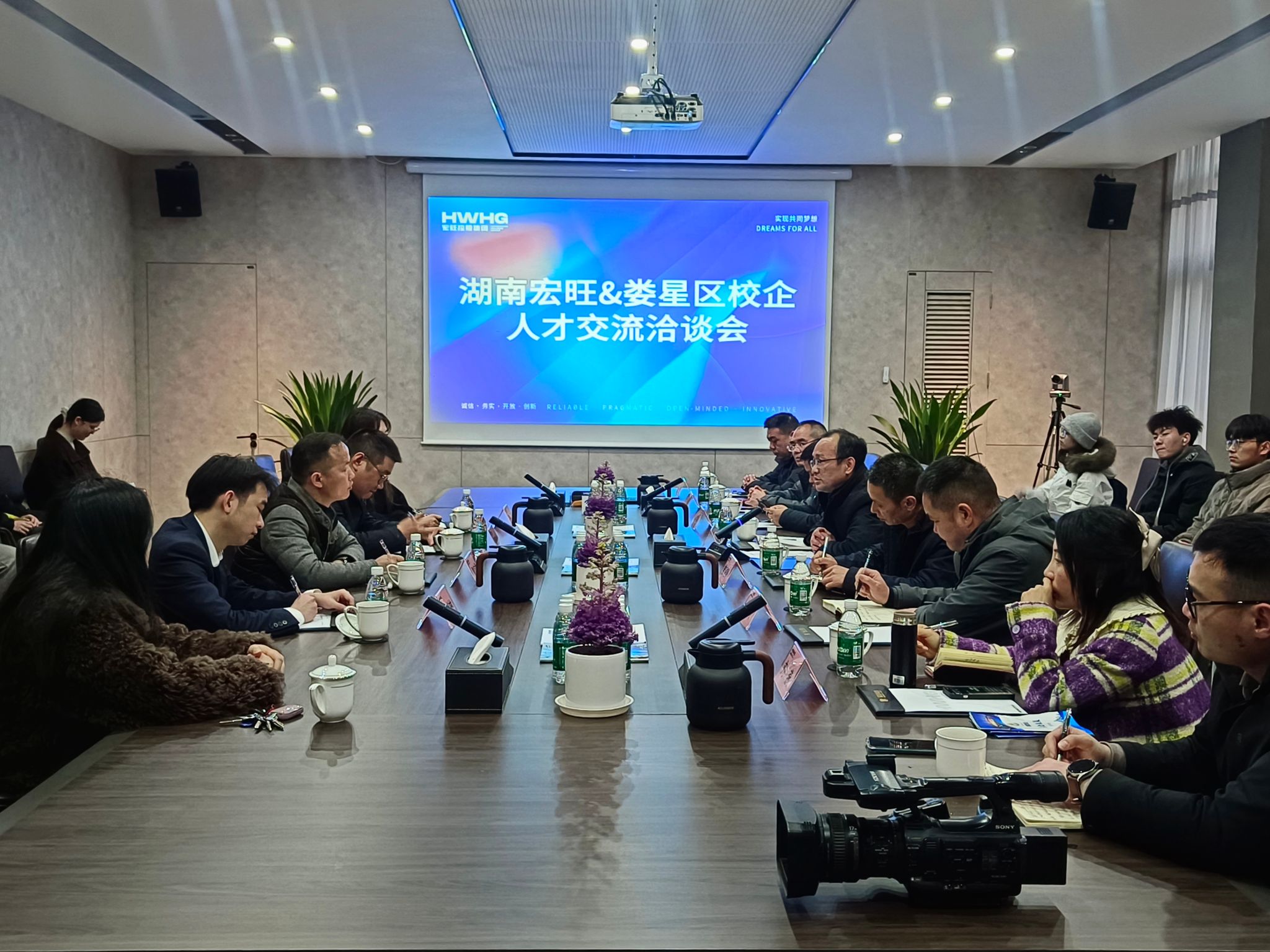 校企沟通环节,钟勇分别向各企业负责人介绍了材环学院的发展历程、专业设置、师资力量、科研成果等情况,并表达了与企业深度合作的意愿,希望学生能够在“真场景”中锤炼“硬本领”。校企双方围绕产学研用、人才培养、校企合作等方面展开深入探讨并达成初步合作共识,为校企合作按下“加速键”。此间,学生代表们提出了“学历重要还是工作经验重要”、“考职业证是否有时间条件限制”等职业困惑,企业高管耐心解答,并提出了“以德为先、以技为长”的美好寄语。参观结束后,材环院环境工程专业大三学生曾柔同学有感而发:“没想到家乡拥有这么多实力雄厚的企业,无论办公环境、福利待遇还是职业前景都很不错,将来如果有机会,愿意留在娄底,为家乡发展贡献自己的力量。”