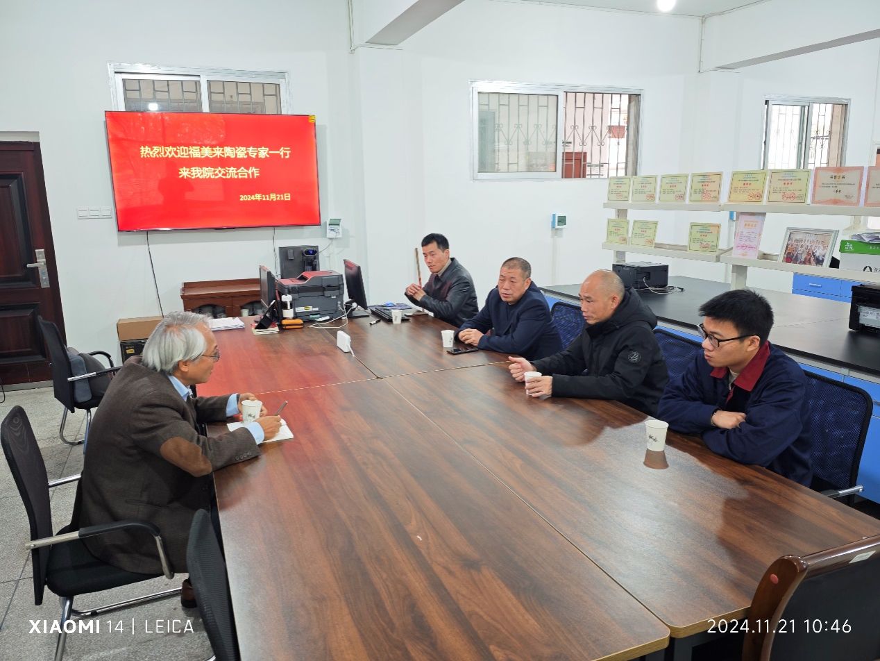 11月21日,我院林华泰院士、罗飞和肖雷博士以及福美来电子陶瓷企业的专家一行在树艺楼205会议室进行项目合作洽谈。