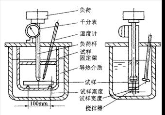 塑料试样浸在一个等速升温的液体传热介质中(甲基硅油),在简支架式的静弯曲负载作用下,试样达到规定形变量值时的温度,为该材料的热变形温度(HDT)。