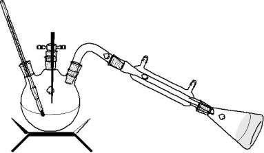 500ml三口瓶,毛细管(自制),刺型分馏柱,0-100℃温度计,接收瓶。