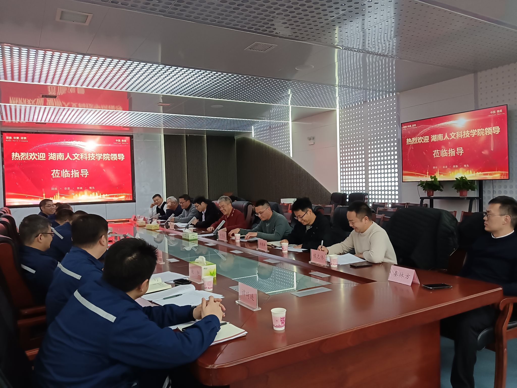 为精准洞察产业发展动态,切实提升服务地方经济发展的能力和水平,2月10日下午,校党委委员、副校长谭峰亮带领金属材料、环境工程及智能控制领域共6名博士教授赴湖南华菱涟源钢铁有限公司走访交流,先进钢铁材料技术国家工程研究中心华中分中心主任周明伟陪同。涟钢副总经理邓必荣、李国仓、梁亮共同接待学校一行并开展座谈交流,座谈会由华菱涟钢研究院院长刘旭辉主持。