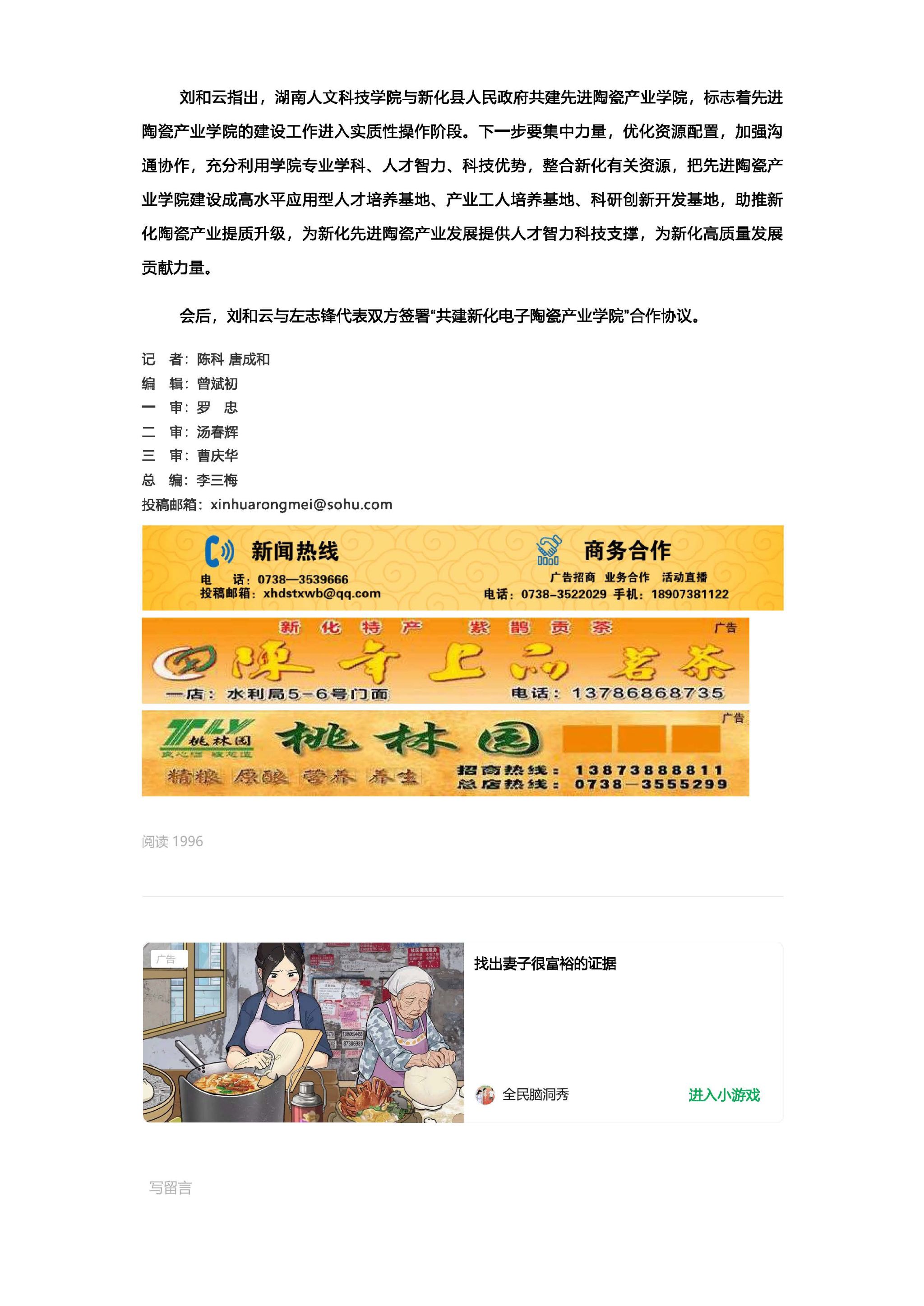 ballbet贝博bb艾弗森与新化县共建先进陶瓷产业学院合作签约仪式举行