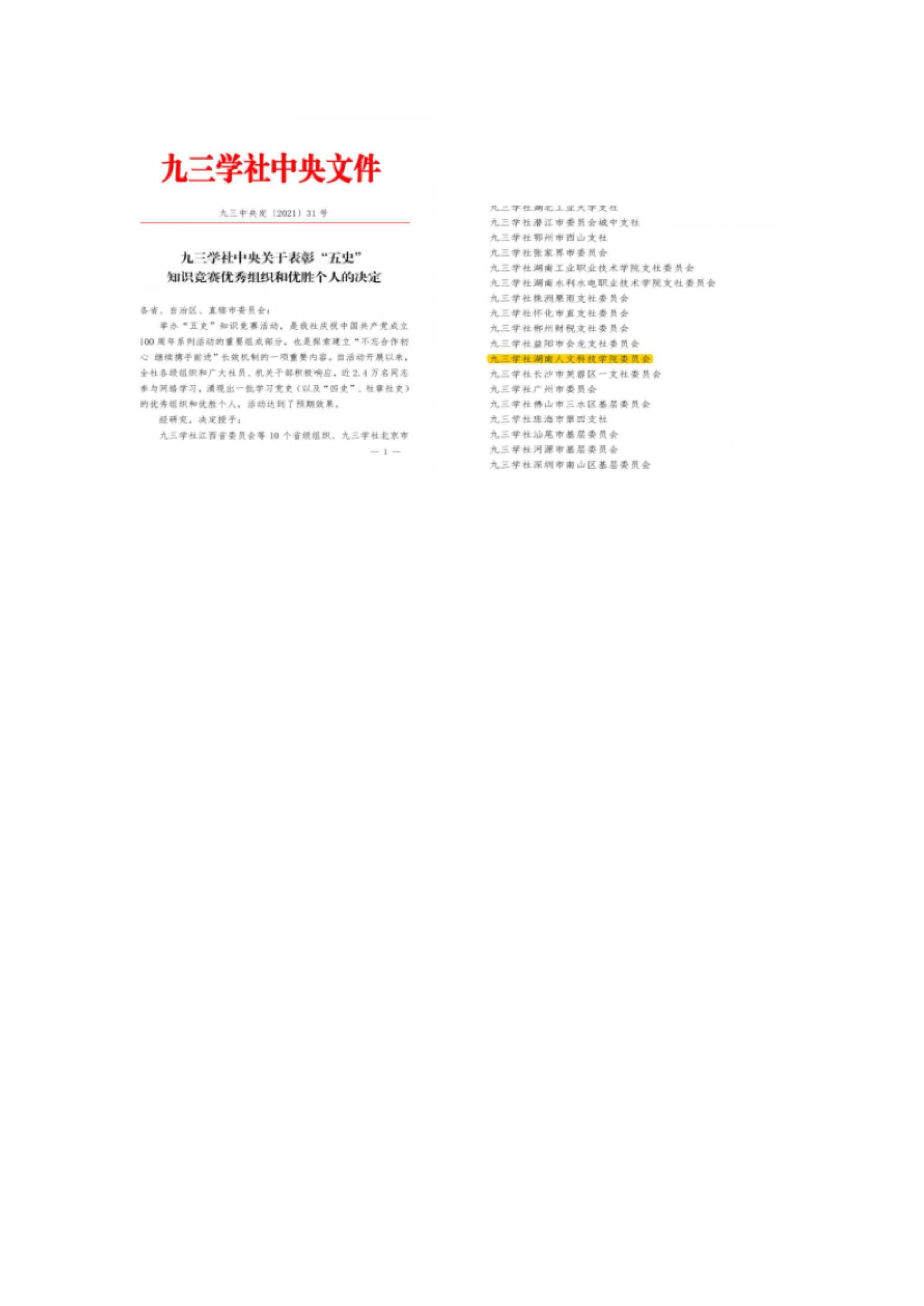 喜报!贝博九三学社委员会在九三学社中央“五史”知识竞赛中荣获“社基层优秀组织奖”