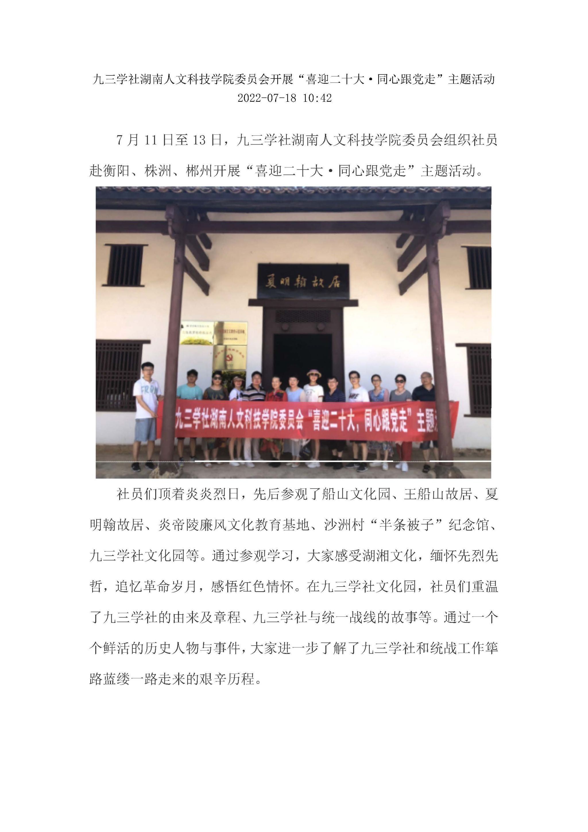 九三学社ballbet贝博bb艾弗森委员会开展“喜迎二十大·同心跟党走”主题活动