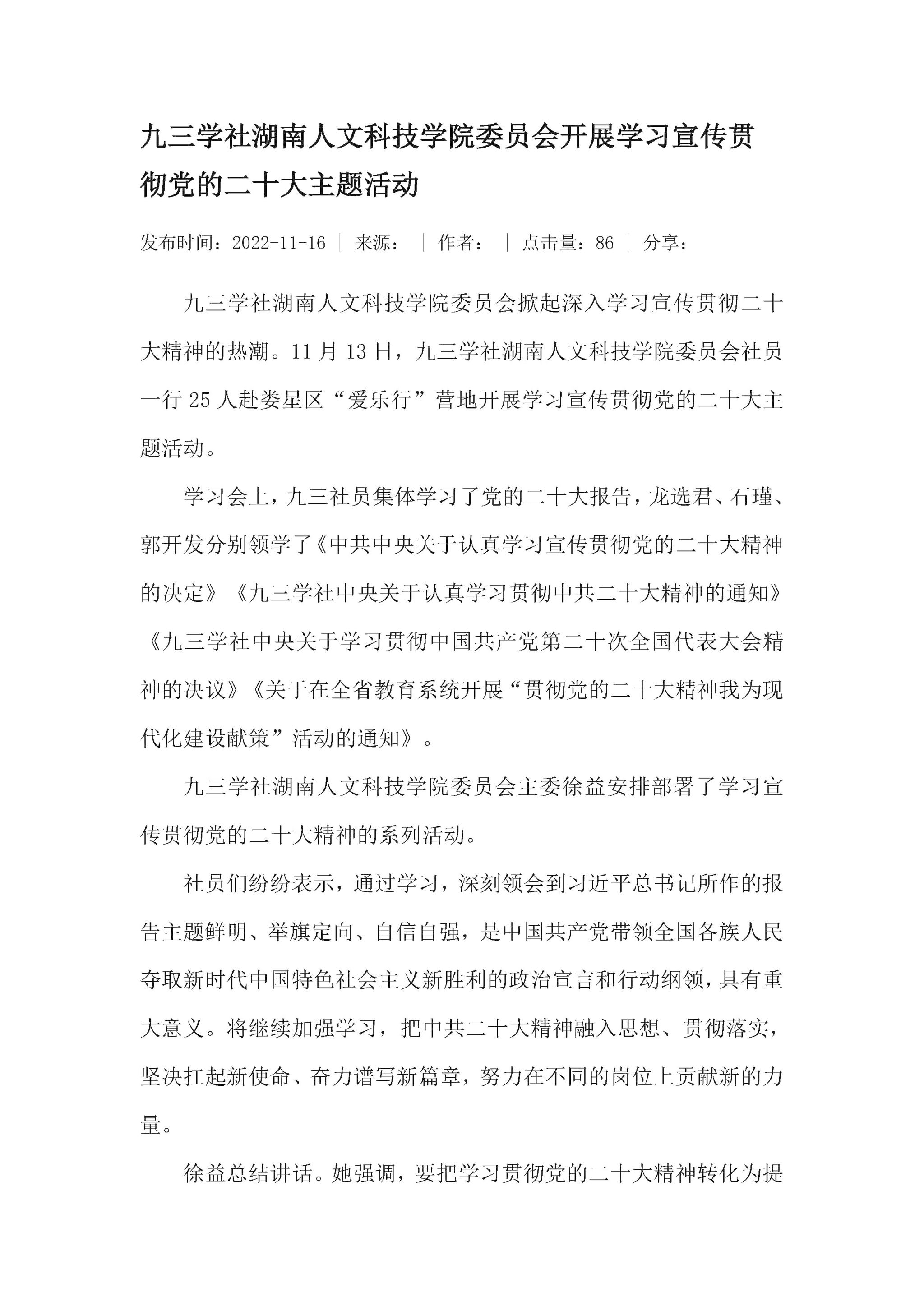九三学社ballbet贝博bb艾弗森委员会开展学习宣传贯彻党的二十大主题活动