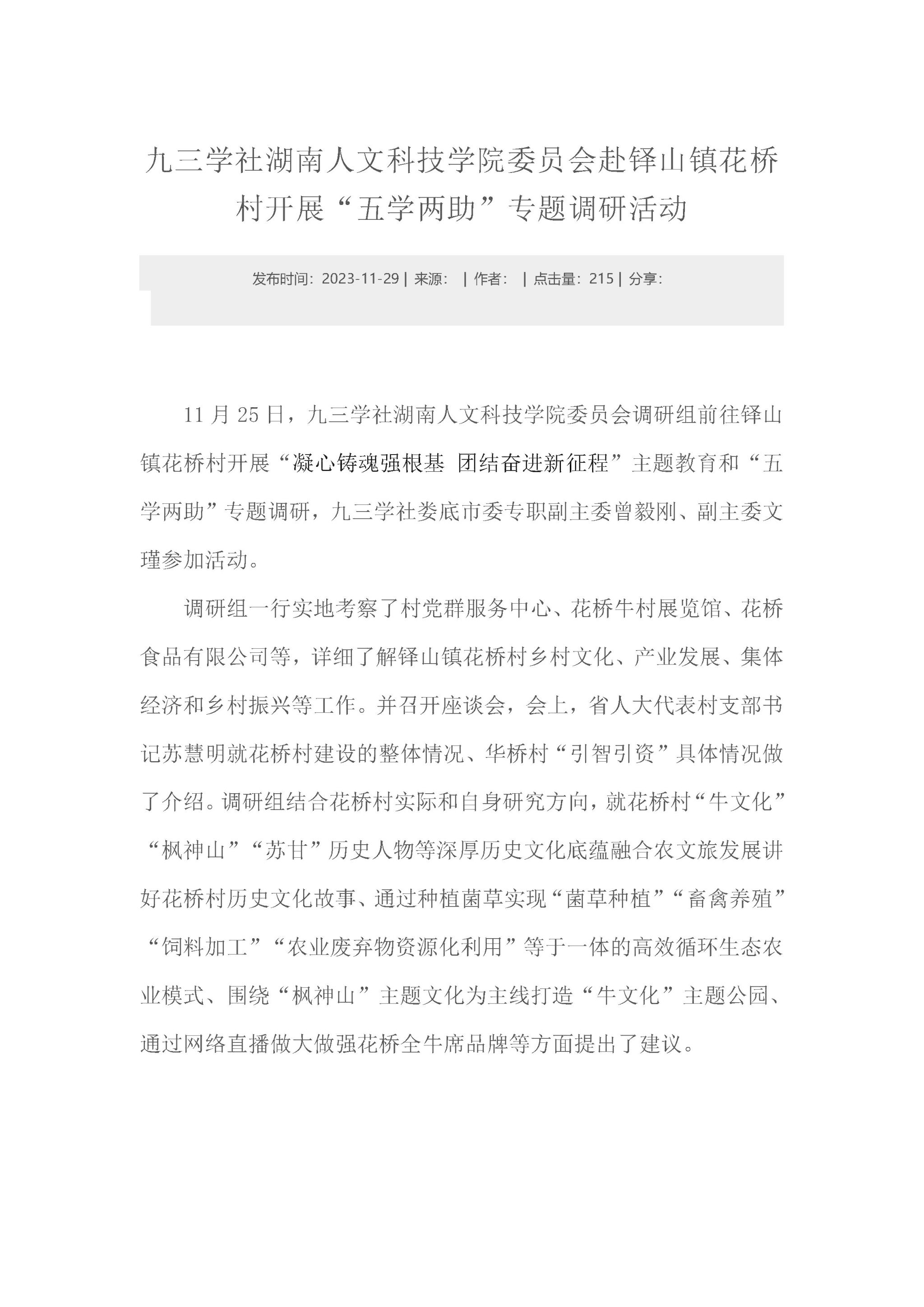 九三学社ballbet贝博bb艾弗森委员会赴铎山镇花轿村开展“五学三助”专题调研活动