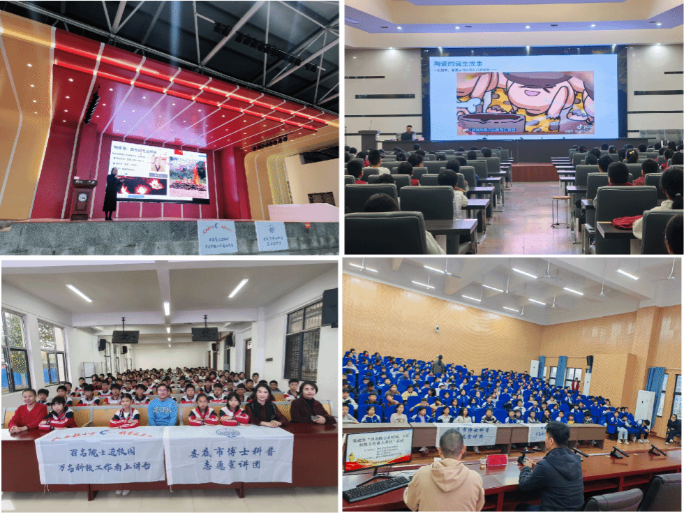 2025年10月30日,ballbet贝博bb艾弗森材料与环境工程学院院长文瑾带领湖南省科普教育基地骨干教师罗飞、钟洪彬、肖雷,赴娄底市新化县开展“化学科普进课堂”专项活动。本次活动以“火与土的魔法——走进化学与材料的奇妙世界”为主题,先后走进新化县思源学校、北塔学校、芙蓉学校及枫林街道滨江学校,为四所学校的800余名学生带来了一场别开生面的材料科学启蒙之旅。