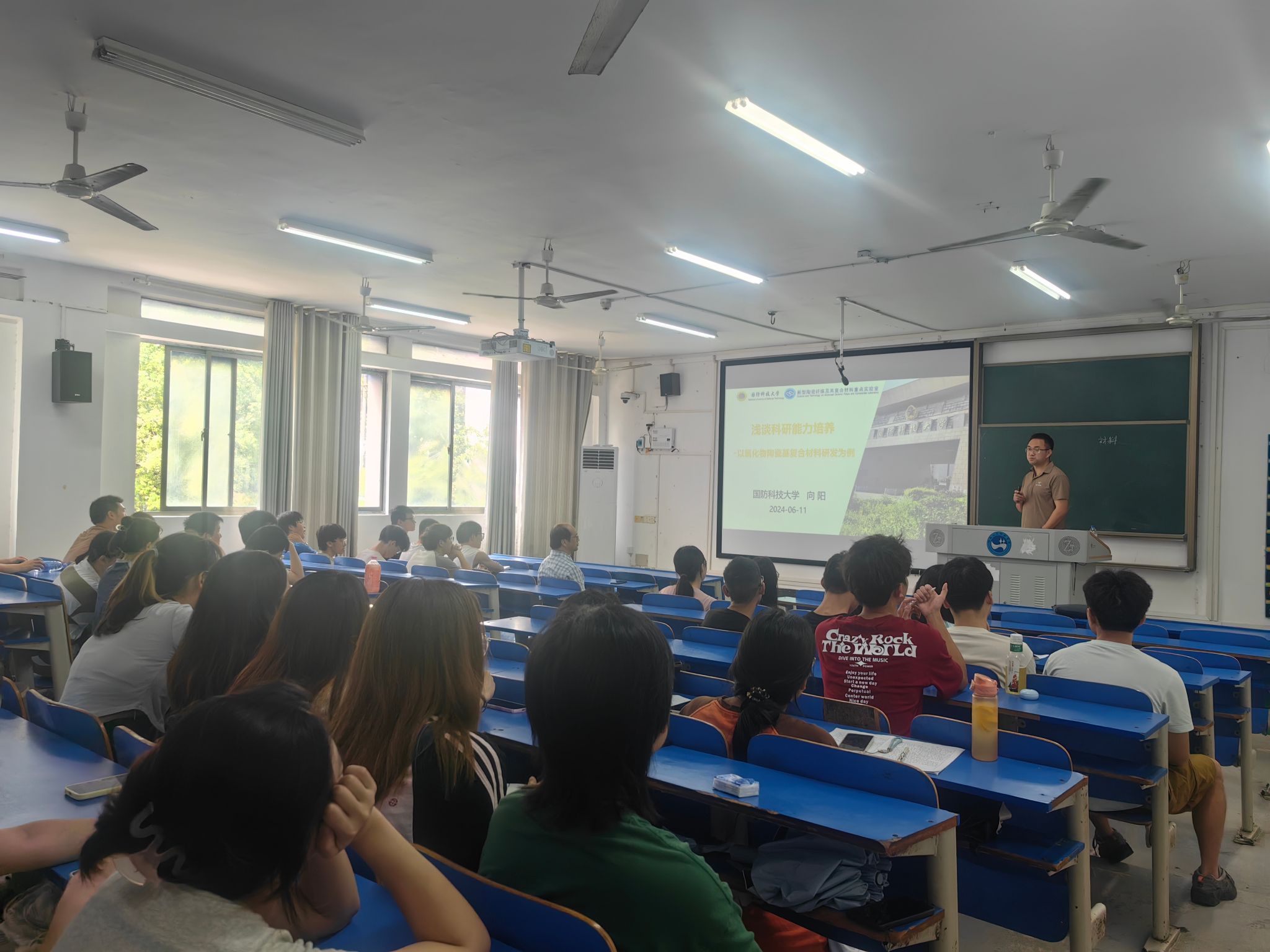 6月14日,国防科技大学向阳教授应精细陶瓷与粉体材料湖南省重点实验室文瑾主任邀请,在致远楼举办了题为“氧化铝陶瓷基体复合材料”的专题讲座。此次讲座吸引了众多的学生,包括材料与环境工程学院的老师们,他们对这一材料领域的最新动态和发展趋势表现出浓厚的兴趣。