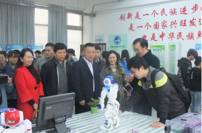 张世英组长在信息学院展区看机器人表演