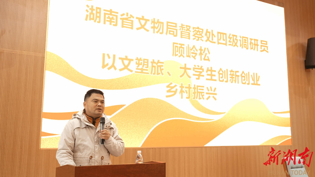省文物局督察处四级调研员顾岭松从“以文塑旅、大学生创新创业”的角度谈通过文物保护利用赋能大学生创新创业和乡村振兴。