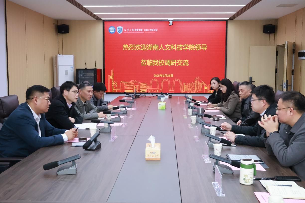 为深入贯彻湖南省委、省政府支持大学生创业工作推进会议精神,2月28日下午,校党委委员、副校长谭峰亮带队赴湘潭大学调研创新创业教育工作,双方通过“座谈交流+实地考察”形式共探双创教育协同发展路径。湘潭大学党委委员、副校长喻祖国,创业学院、卓越工程师学院相关负责人和贝博创新创业指导中心相关负责人参加。