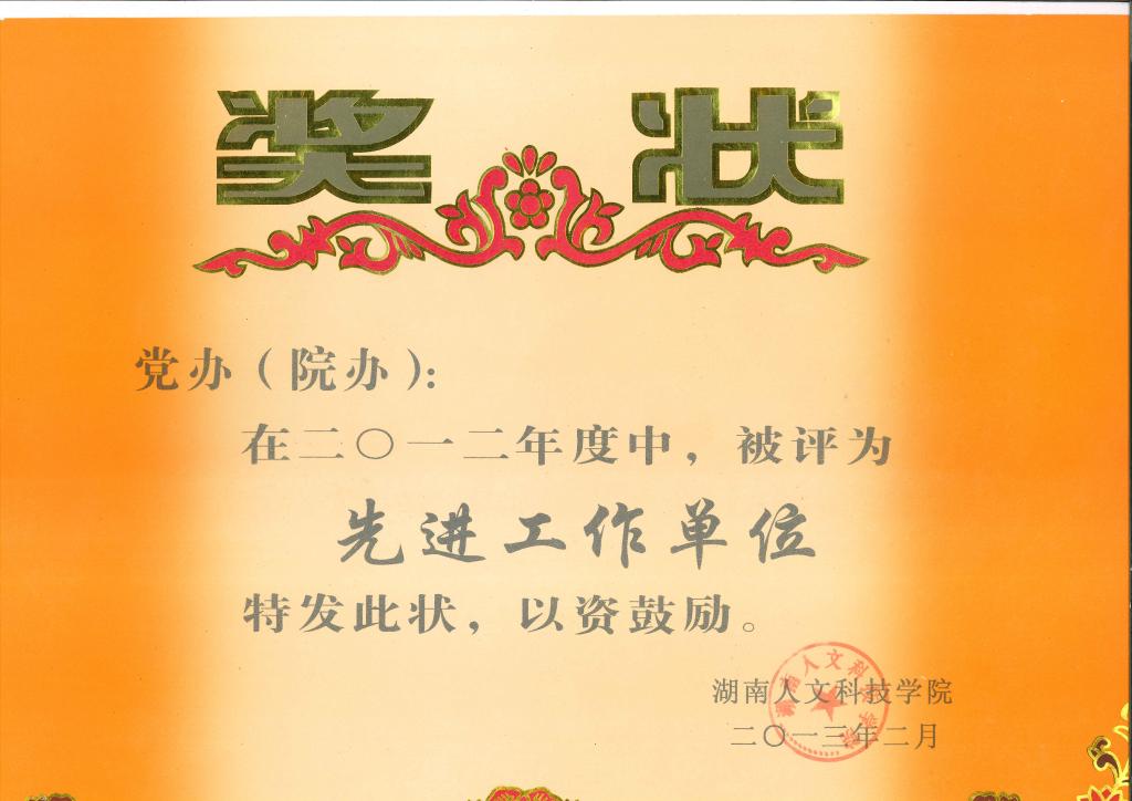 2012年度学校先进工作单位