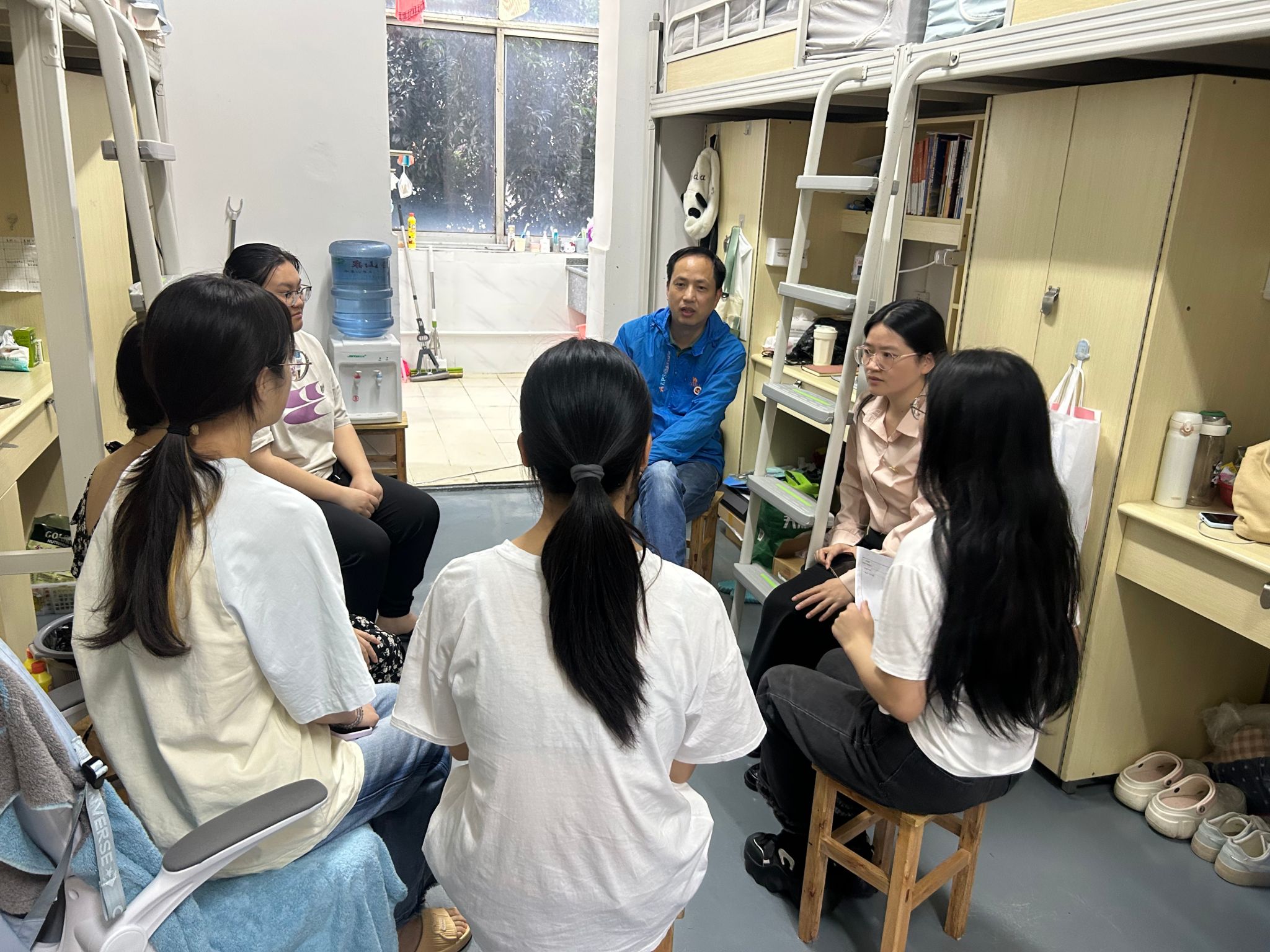 5月11日晚,党政办党支部全体党员干部深入法学院和数金学院学生寝室开展“三联系”专项工作,聚焦学生需求,强化迎评动员,以务实行动助力学校迎评促建。