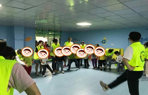 本次活动内容有老鹰捉小鸡和丢手绢,由两组社会工作专业学生带领两队小朋友们开展。在活动中,同学们先引导了小朋友们做热身活动,包括扭腰、踢腿等来化解小朋友们的迟疑、冷漠、安抚他们的哭闹。接下来的游戏活动中,状态渐佳的小朋友们边跑边发出了爽朗悠长的笑声,这场短暂的追逐仿佛能带给他们真正的快乐。期间落伍的“小鸡”被带出,待一轮结束后,出圈的“小鸡”们纷纷给大家带来了自己拿手的才艺表演。看着小朋友们走出自己的世界,表达自己、展示自己,家长们露出了久违的笑容,享受到难得的轻松。同学们感受到这些变化后,身体的疲惫瞬间消散,心中似乎都流窜进了无穷的动力。