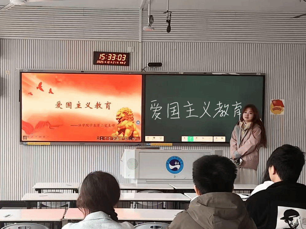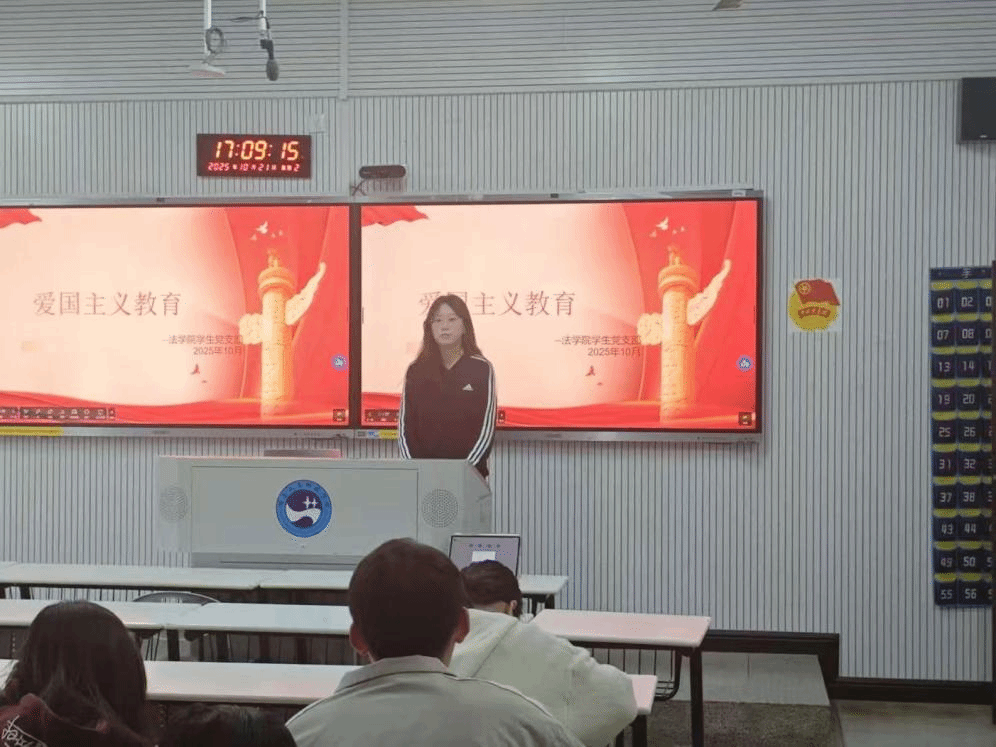 为厚植爱国主义情怀,增强青年学生的责任担当,法学院学生党支部于10月21日下午在致远楼303教室组织开展爱国主义教育。