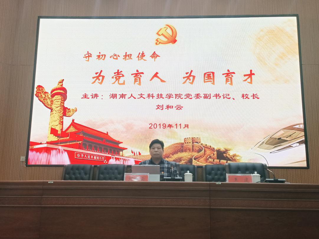 11月12日下午,党委副书记、校长刘和云在匠成楼报告厅讲授了“不忘初心,牢记使命”主题教育党课。党课由校党政办主任王建主持,法学院师生党员、党政办、审计处、督察处、外国语学院师生党员参加。