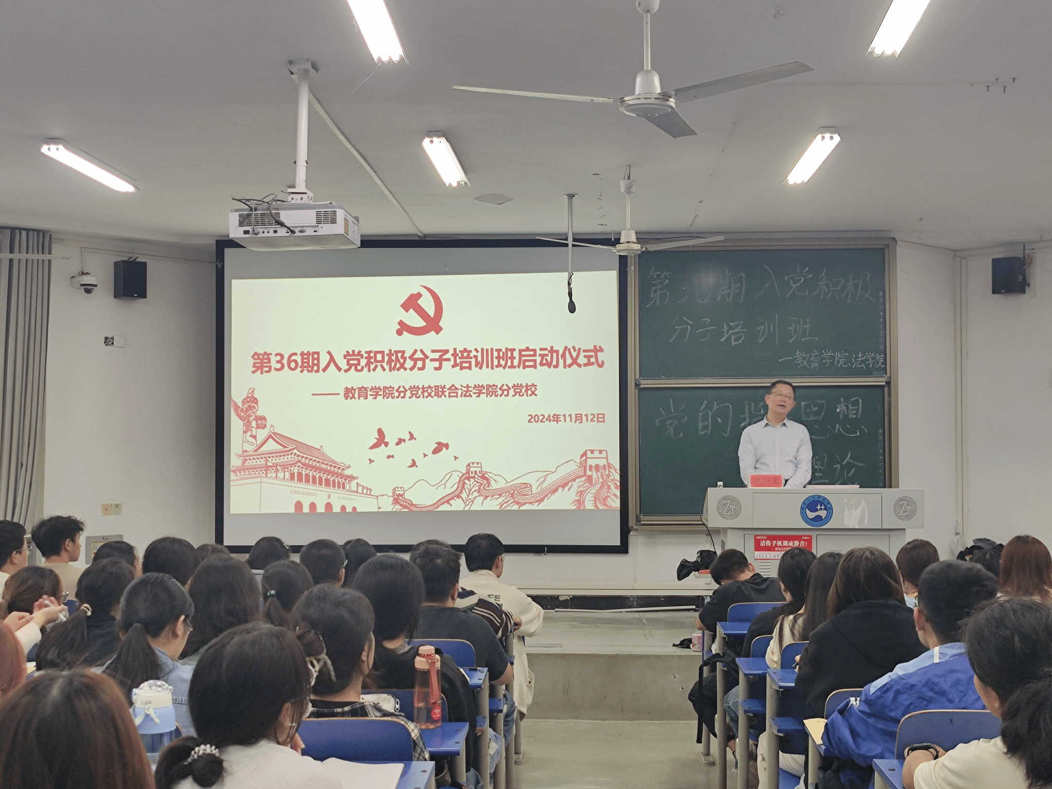 为提升入党积极分子的理论修养,2024年11月12日至28日,法学院分党校联合教育学院分党校举办了第36期入党积极分子培训班。本次培训共7个专题,共133名学员参加培训。