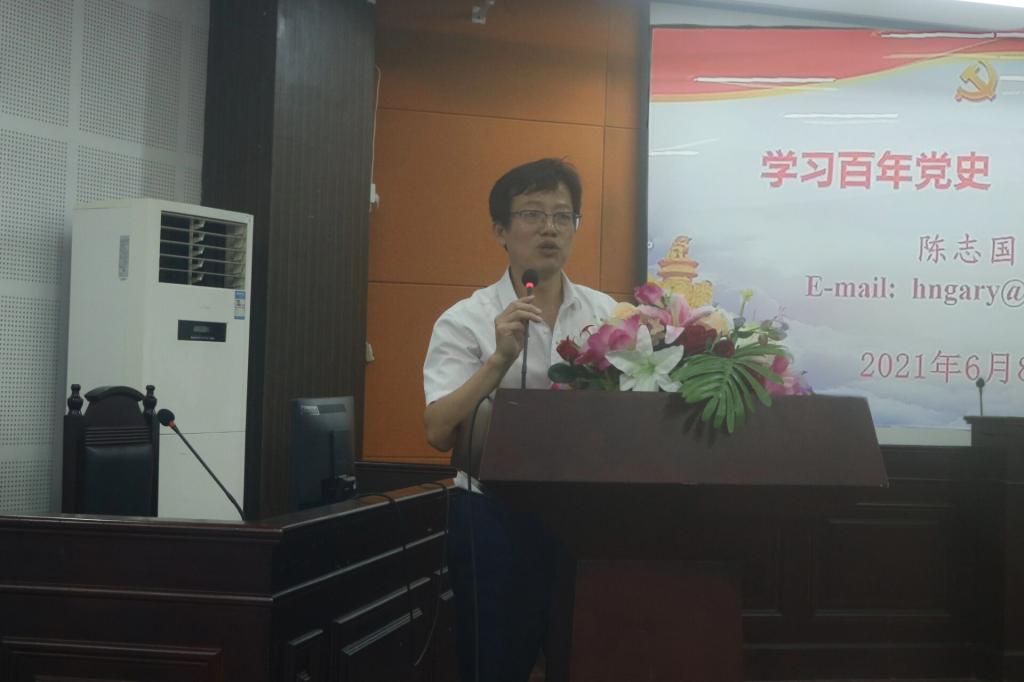 6月8日,学校党委委员、副校长陈志国在致远楼202上题为“学习百年党史,奋进新时代”的党课。审计处全体党员,法学院师生党员、预备党员、入党积极分子参加。党课由法学院党总支副书记、院长朱耀斌同志主持。