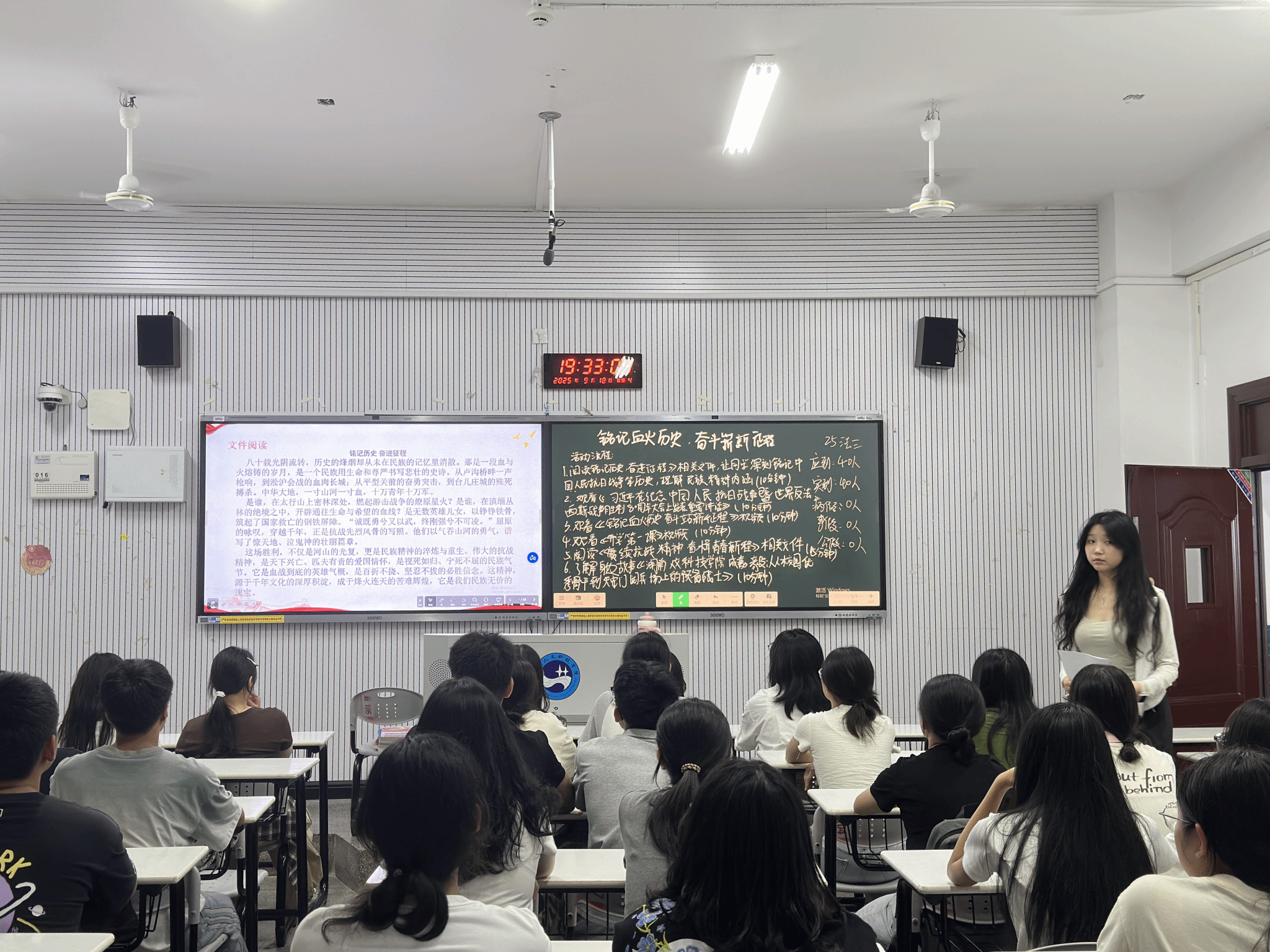 此次团课的顺利开展,进一步深化了同学们的历史认知,把握了抗战精神的核心内涵与其历史形成过程及精神价值,明确了在新时代背景下传承这一精神对国家发展、民族复兴的重要作用。强化了国家认同,凝聚了奋斗共识,是一次深刻而有意义的爱国主义教育与思想政治教育。(供稿:胡莹;供图:胡莹;一审:吴佳琪;二审:邓南南;三审:肖兵明)
