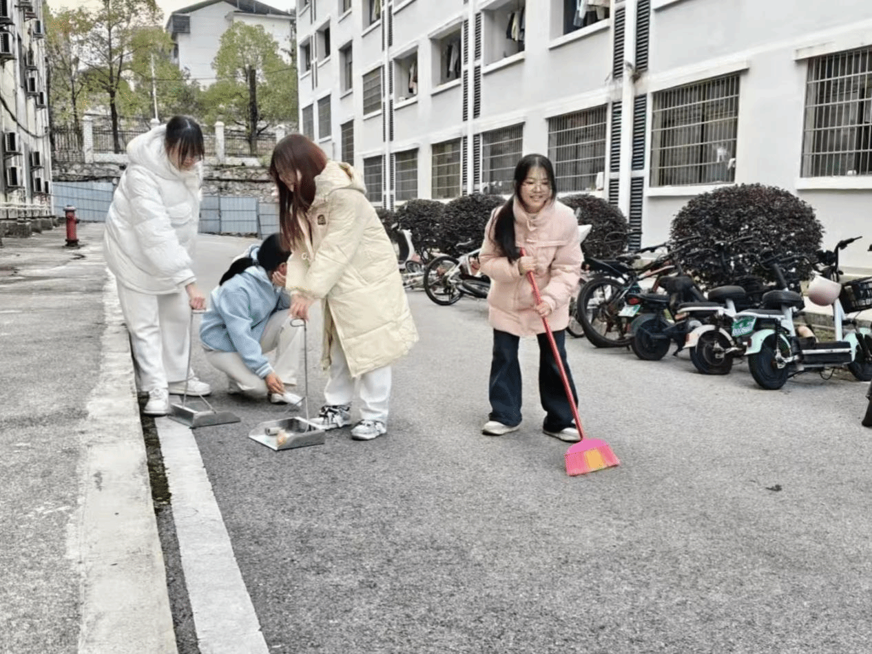 活动现场,同学们迅速投入工作,对宿舍周边、林荫道等区域进行集中清理,大家手持扫帚清扫落叶,分类收纳垃圾,仔细擦拭垃圾桶。经过共同努力,花田很快恢复了整洁与生机。