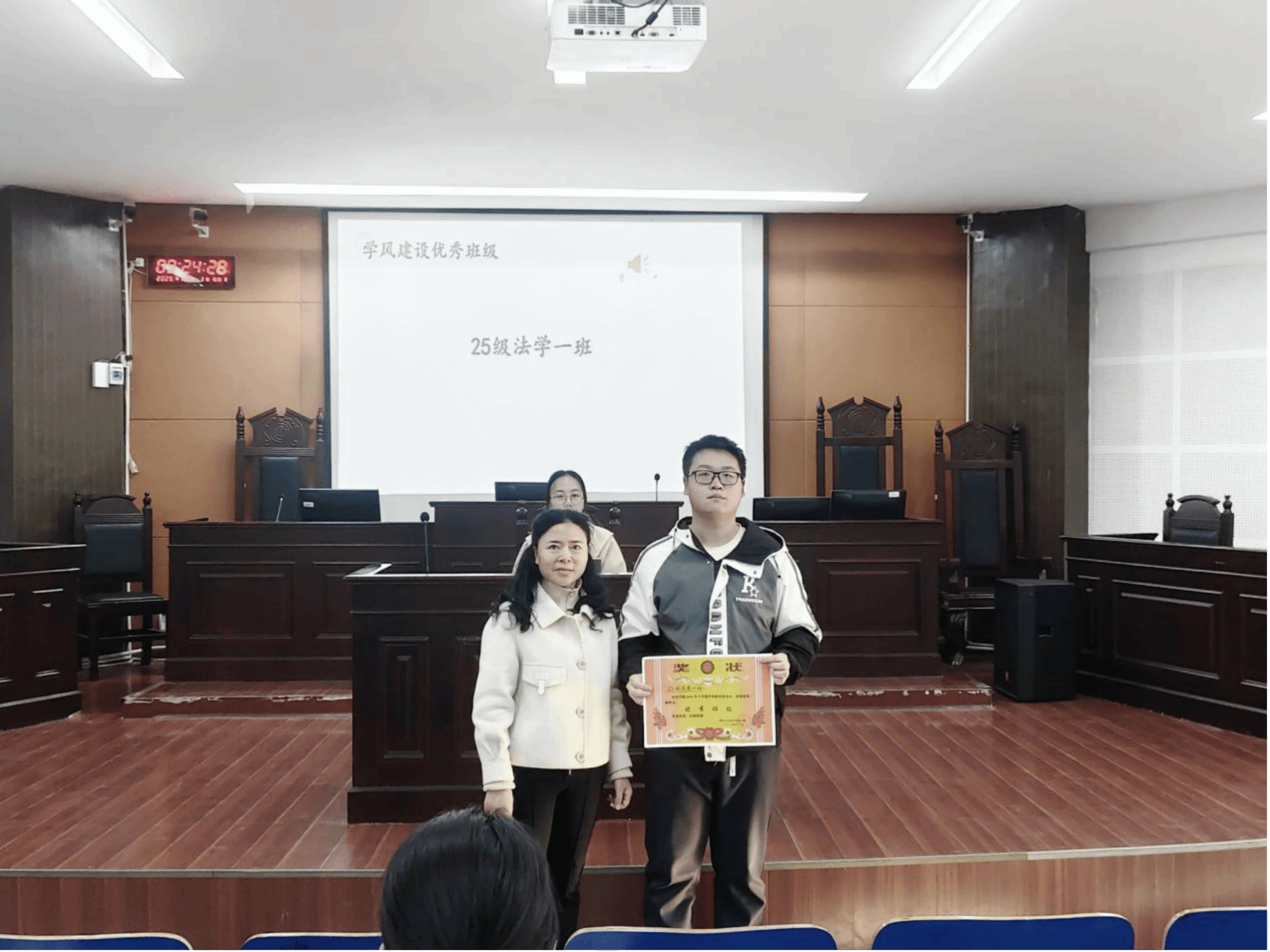 2025年12月1日上午,法学院以“崇法明理,笃学力行”为主题,顺利召开2025年下学期学风建设总结大会。法学院党总支副书记邓南南、学工办主任陈玲,辅导员彭蓉、吴佳琪,团学会主席团成员及2025级全体学生齐聚一堂。会议由25级法学一班李心蕊主持。