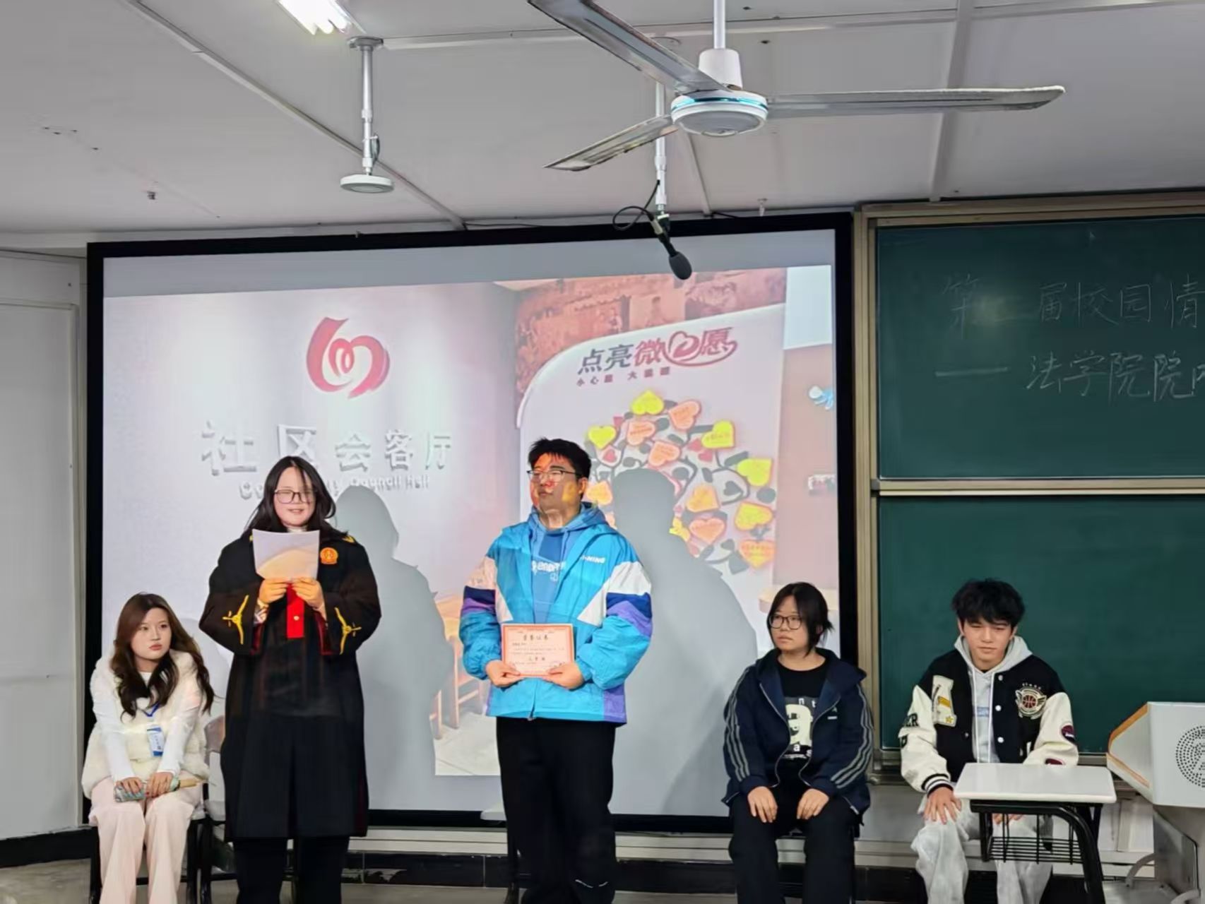 此次大赛不仅展现了法学院学子的创意表达与专业思考,更以情景剧为载体,为校园文化注入了青春活力,也让法治宣传与青春成长实现了有机融合,丰富了学院文化育人的实践形式。(供稿:马梦琦;供图:法学院;一审:吴佳琪;二审:邓南南;三审:肖兵明)