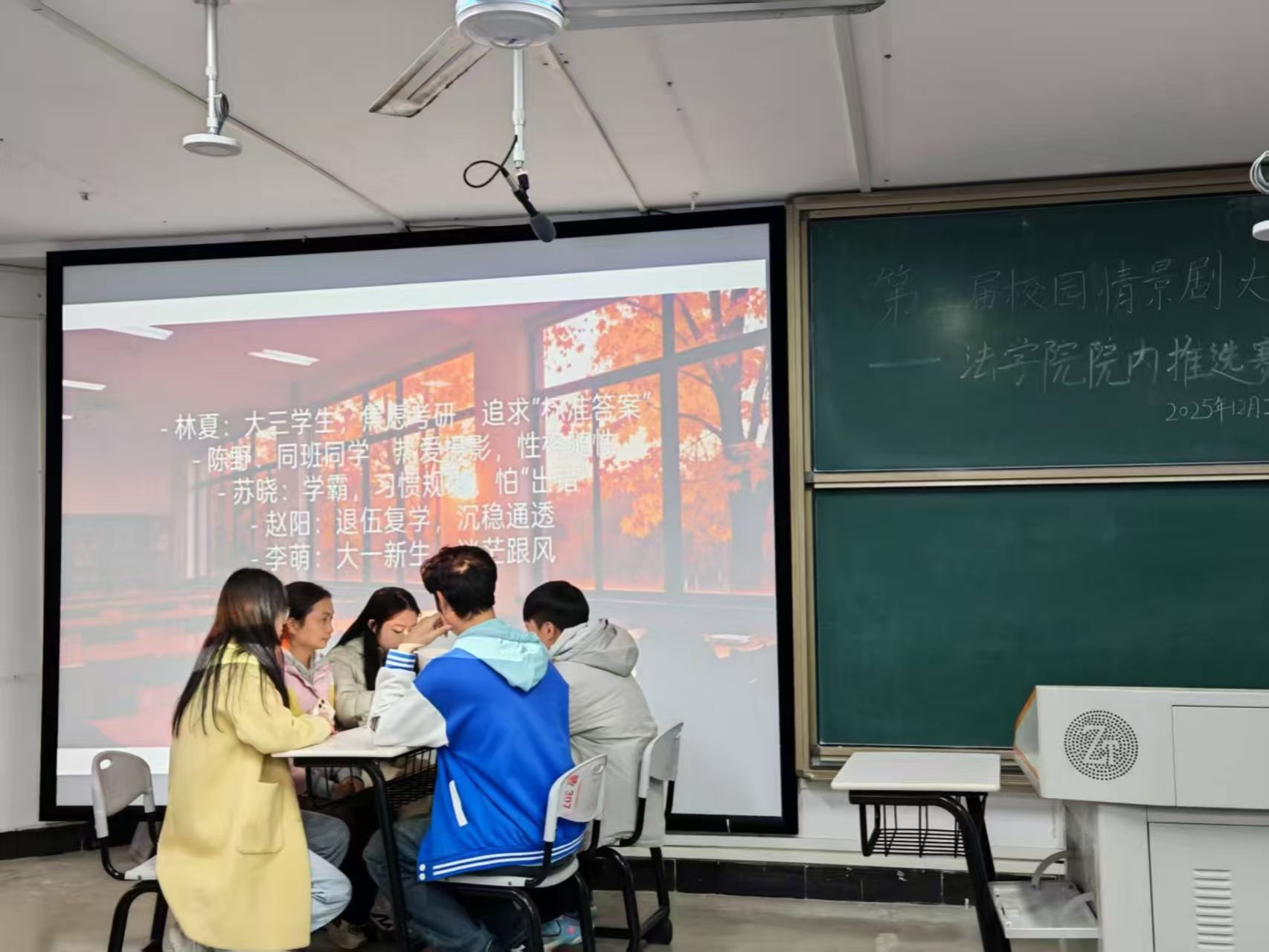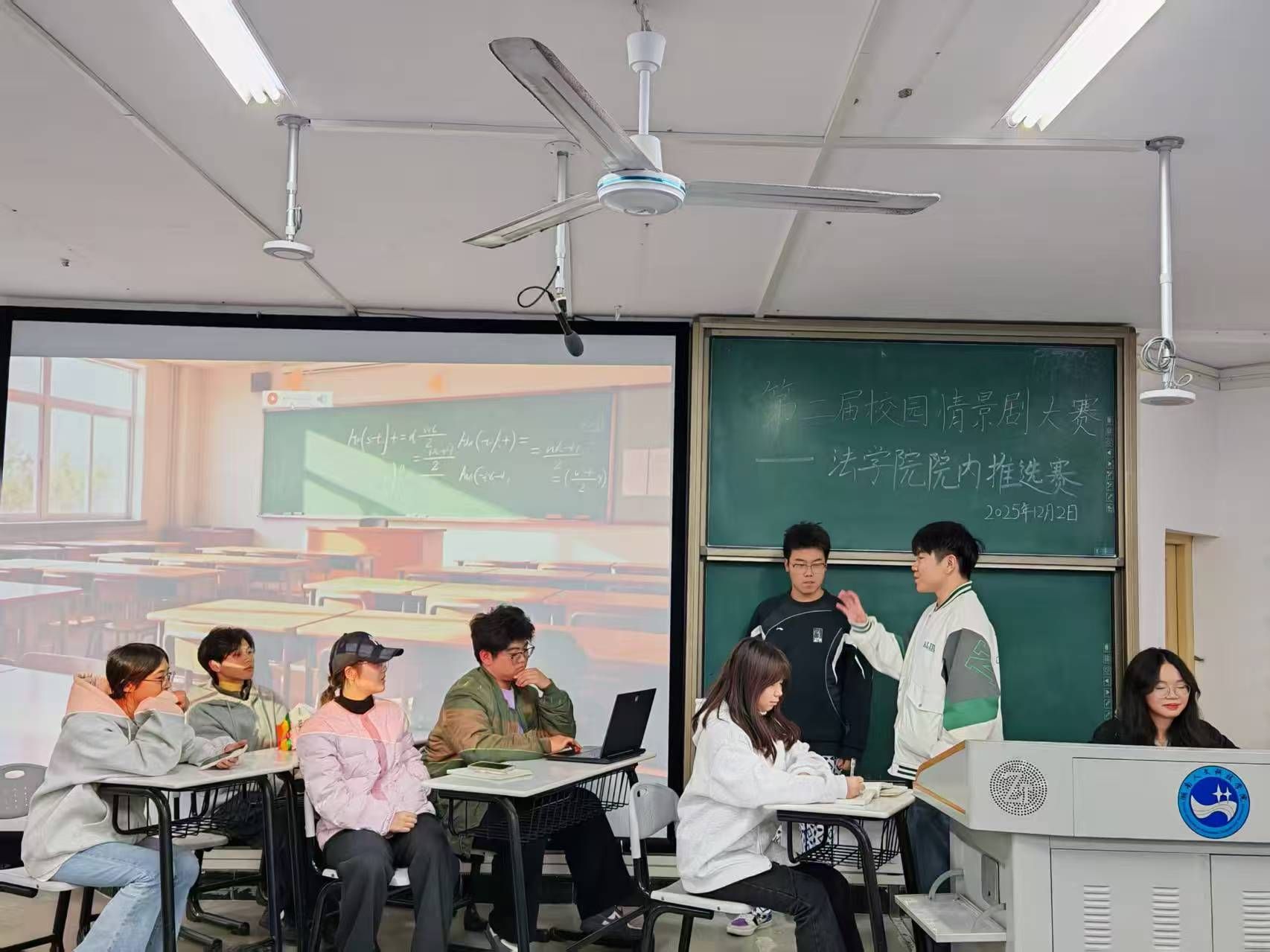 12月2日下午,法学院第二届情景剧大赛院内推选赛在致远楼301教室顺利举办。学工办主任陈玲,辅导员吴佳琪、羊哲思,学生会主席团成员及各部门部长共同参与本次活动。此次比赛聚焦“青春叙事+专业底色”,多支参赛队伍携原创剧本登台,以生动表演诠释青春创意与专业思考。