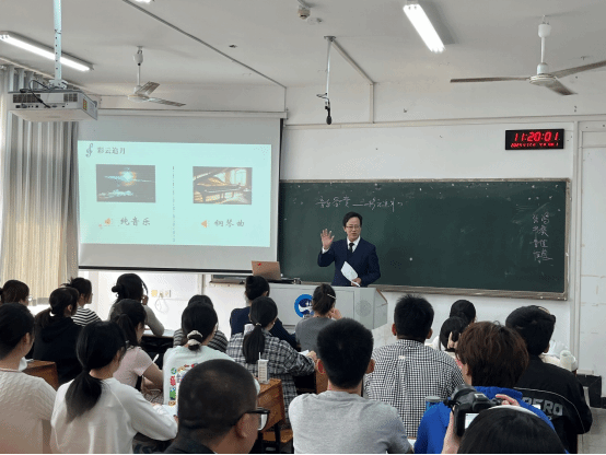 朱教授还采用了互动式的教学方法。他不时地向在场的老师提问,鼓励大家分享自己在聆听音乐时的感受和联想。这种互动让原本略显枯燥的理论讲解变得生动有趣,也让每一位参与者都更加深入地融入到音乐鉴赏的情境之中。
