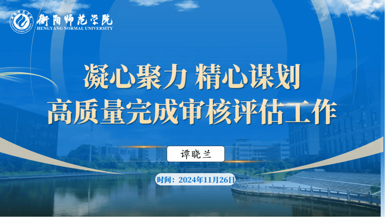 2024年11月26日,贝博邀请衡阳师范学院教学质量监控中心常务副主任谭晓兰开展新一轮本科教育教学审核评估经验分享,讲座以“凝心聚力、精心谋划”为主题。