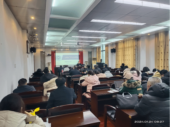 2024年1月24日,质量监控与发展规划处举办了师范专业认证申报工作专题培训会,邀请了教育部师范专业认证专家、湖南师范大学博士生导师谭长银教授来校做主题为“专业认证申请阶段的举证要求”专题培训讲座。思想政治教育、物理学、体育教育、汉语言文学、应用心理学(师范方向)、学前教育等专业所在的学院领导、专业的负责人(教研室主任)、专业骨干教师等合计60余人参加了培训。培训会议由质量监控与发展规划处处长蒋冰清教授主持。