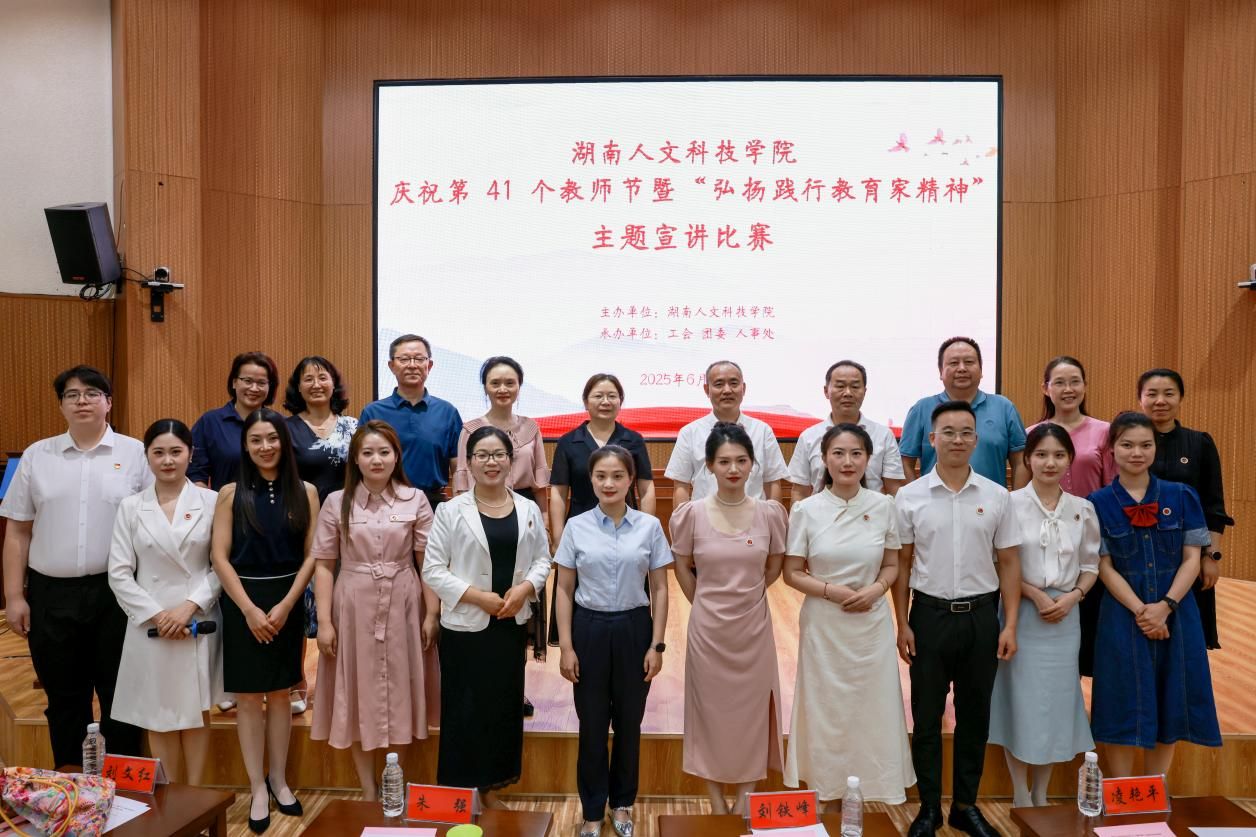 大力弘扬践行教育家精神,涵养尊师重教浓厚氛围,激励学校广大教师和教育工作者学习、传承、践行教育家优秀品质与教育理念,提升教育教学质量与水平。65,“弘扬践行教育家精神”主题宣讲决赛匠成楼报告厅举行。校领导刘铁峰、朱强、凌艳平出席活动,各分工会老师及学生代表300余人现场观看比赛。