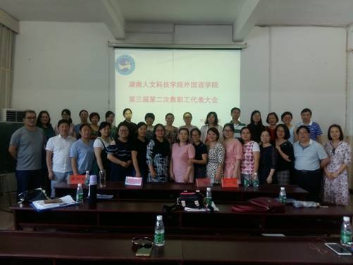 2018年5月15日下午,外国语学院第三届第二次教职工代表大会在播馨楼406会议室召开,会议由外国语学院党总支副书记刘莉主持。