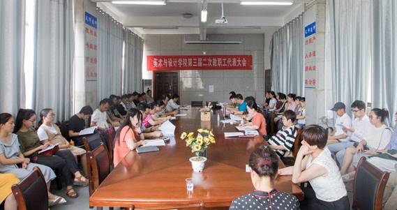 5月28日下午,美术与设计学院第三届二次教职工代表大会在逸夫楼二楼会议室召开。全体教职工参加大会,会议由学院副书记易俊主持。