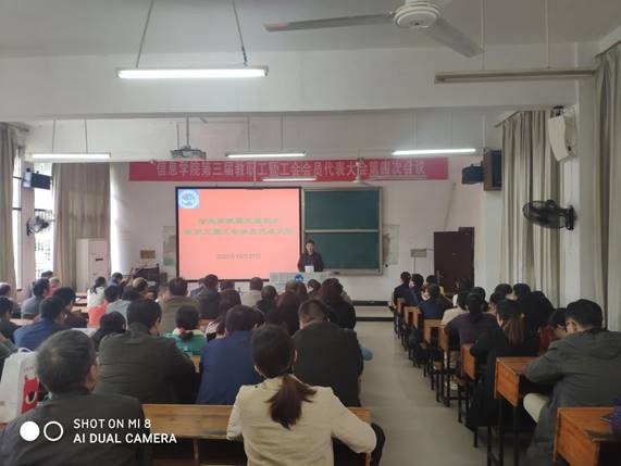 2020年10月27日下午两点半至五点半,信息学院在百全楼103召开了第三届教职工暨工会会员代表大会第四次会议,大会由党总支书记谭甲凡主持,全体教职员工参加了此次会议。
