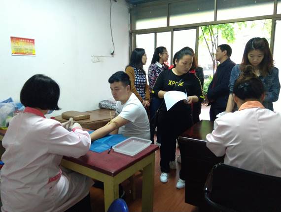 5月16日上午,春意盎然,暖意融融。校计生协会联合娄星区妇幼保健计划生育服务中心、大科办事处和大科居委会计生协会在校医务室组织开展教职工免费优生健康检查和一站式办证服务。区计划生育服务中心的专业人员有条不紊开展信息采集、抽血化验等工作;大科居委会、大科办事处计生办工作人员登记审查《生育服务登记表》所需资料,为教职工答疑释惑;工会工作人员发放计生家庭意外伤害保险单、人口与计划生育宣传手册、计生用品及一、二孩生育服务登记及再生育证申请材料清单,审核《生育服务登记表》并签署意见。整个活动场面和谐温馨,大家都洋溢着幸福的笑容。
