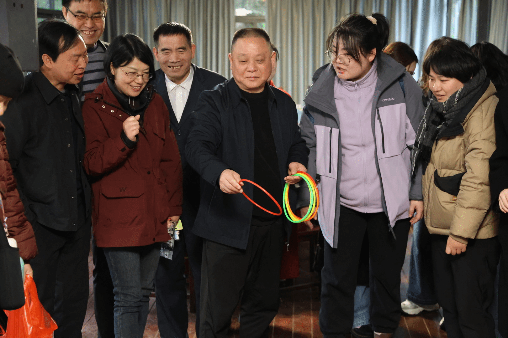 在乐农山庄,开展了趣味性十足的套圈游戏,活动迅速点燃了教职工们的参与热情,更在欢声笑语中拉近了彼此的距离,在趣味游戏中,教职工们展现了积极向上的精神风貌,并增强了团队间的凝聚力。