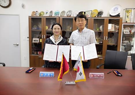 (石潇纯副校长和牧园大学副校长Jaihyeong Bark签署协议)
