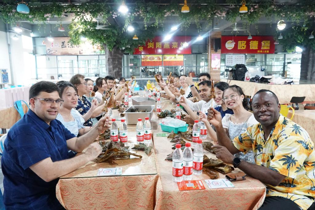 中国传统佳节端午节即将来临,为加强国(境)外人士了解中华优秀传统文化,增强中国传统节日的文化吸引力,感知中国共产党领导下人民群众生活水平的巨大提高,6月10日,国际合作与交流中心(港澳台办)组织了“粽香浓浓飘万里,中外融融庆佳节”端午节主题活动,副校长陈志国出席活动并致词,文学院院长倪正芳及部分教师代表,在校国(境)外专家、留学生代表,中外文化交流协会学生代表等50余人参加了本次活动。