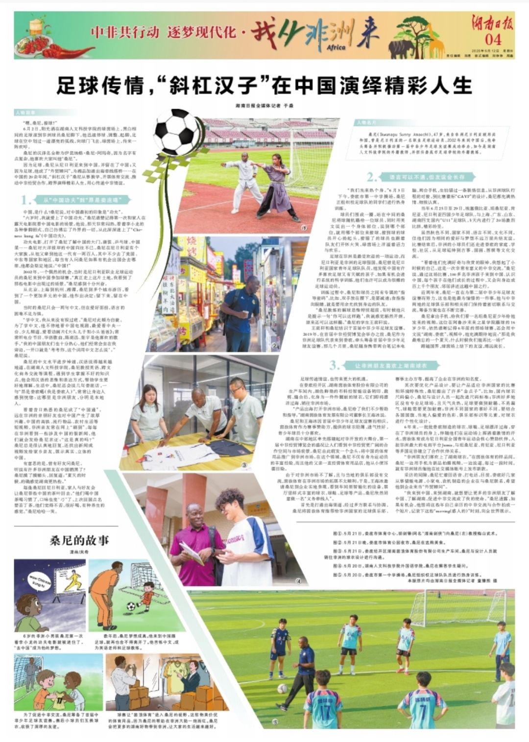 近日,湖南日报整版报道贝博外教桑尼老师的故事。此前,他的故事登上湖南卫视《湖南新闻联播》、中央广播电视总台国际在线《漂洋过海来“湘”遇》专栏、娄底新闻联播《相逢》和中国日报网“领航新征程”纪录片等平台。这些报道讲述了桑尼在贝博、娄底及湖南的多元经历——教足球、练功夫、任外教、当“村民”、搭建中非交流桥梁、助力企业跨境出海、牵线中非经贸博览会等,生动展现贝博外教用心传递中非情谊、讲好中国故事的良好形象,彰显学校“开放扬校”工程的实践成果。