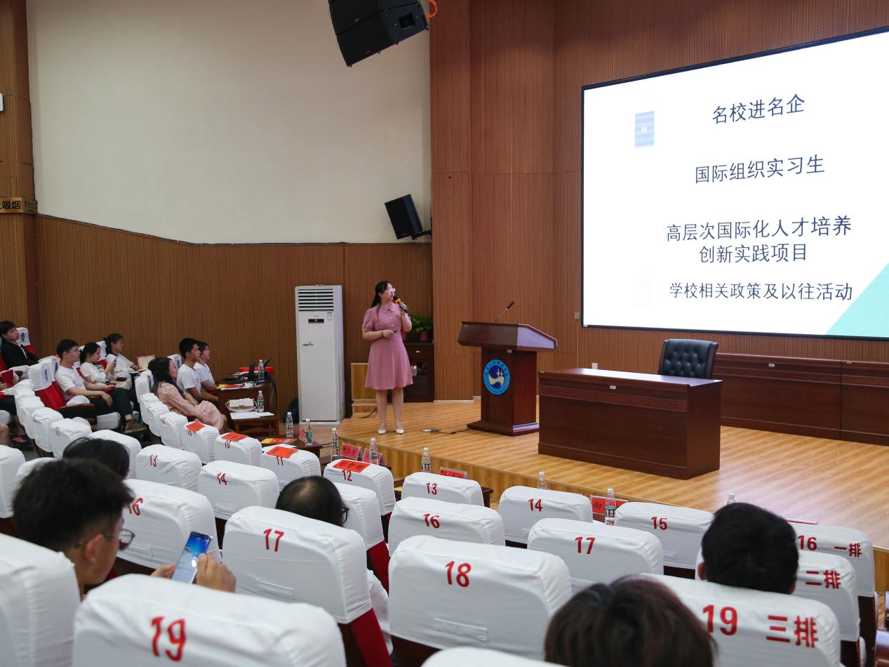 讲座首先分析了当前的国际形势,强调了教育对外开放的重要性,讲述了当代大学生拓展国际化视野的必要性和前景。同时,讲座介绍了贝博目前打造的对外交流的几个重点项目,包括“名校进名企”、“国际组织实习生”、“高层次国际化人才培养创新实践项目”项目。最后,讲座详细讲解了贝博针对学生国际交流的政策以及过往交流案例。