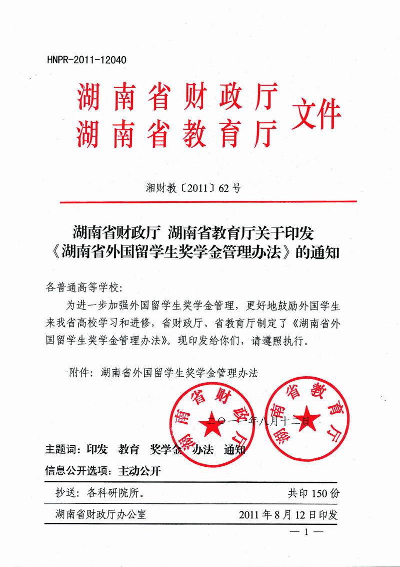 附表:1、湖南省外国留学生奖学金(学历生)申请表