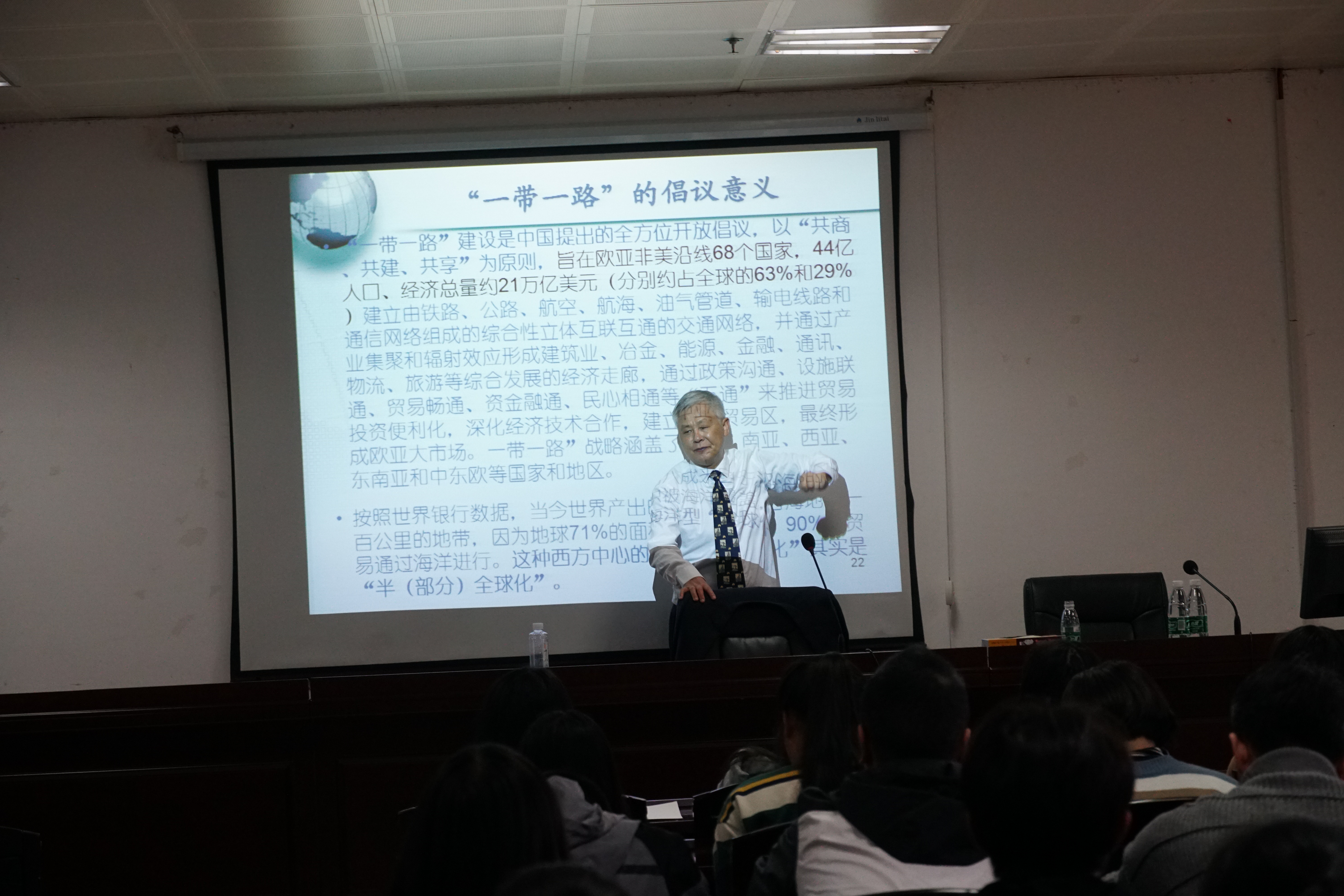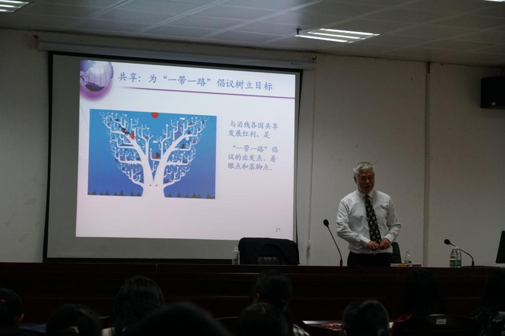 为了培养亲华友华爱华的留学生,国际合作交流中心于11月8日邀请浙江工商大学王国安教授来校讲学。讲座主题为《一带一路与中国梦》。王教授从新时代发展理念出发,讲述了“一带一路”倡议的渊源、内涵和重大意义及“一带一路”倡议实施以来取得的重大成就。最后,王教授用简明扼要的语言把他自己对中国梦的解读,概括为“全世界的人都用中国货;全世界的人都数中国钱;全世界的人都说中国话”。王教授全程用双语讲座,激情澎湃且风趣幽默,不时激起留学生们的阵阵掌声,为贝博“一带一路”来华留学生进行了一场较为独特和新颖的思想引导学术讲座。