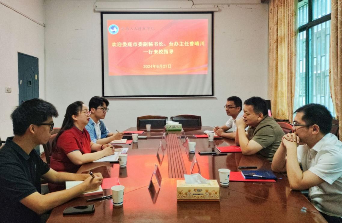 6月27日,娄底市委副秘书长、台办主任曾晴川一行来访贝博,国际交流处(港澳台事务办公室)处长黄敏出席会议,统战部、国际交流处(港澳台事务办公室)相关人员参加。